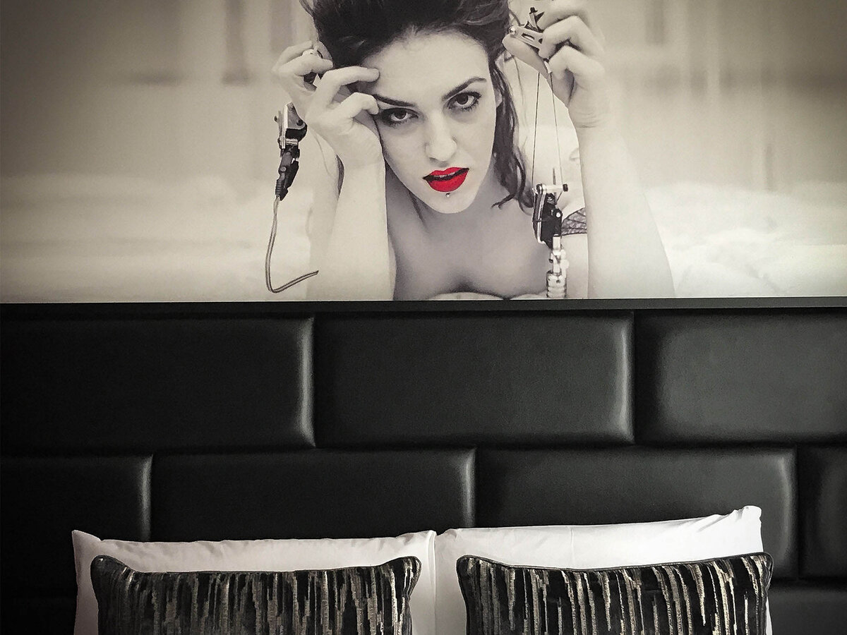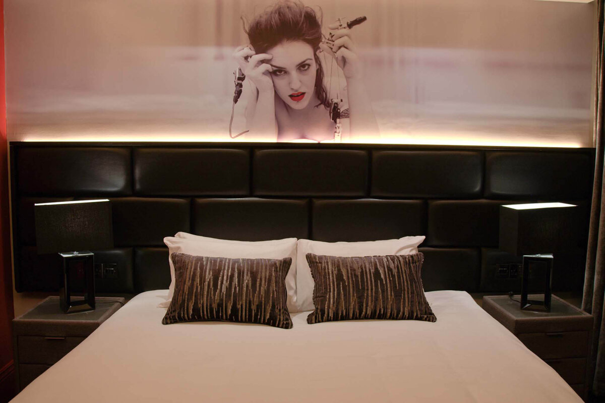 Link to Photo11, a room with two beds and a picture of a womans face